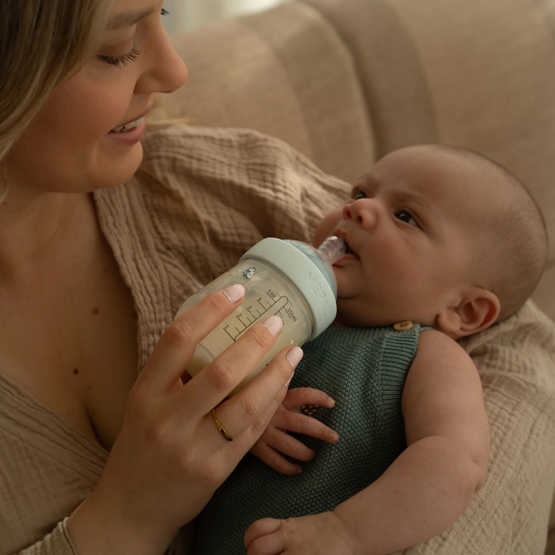 Een fijn begin voor elke voedmoment. De Mepal Mio babyfles van 165 ml, met de lieve Forest Friends print van Little Dutch, combineert comfort met gebruiksgemak. Dankzij het ergonomische ontwerp ligt de fles prettig in de hand en zorgt de zachte siliconen speen voor een natuurlijke drinkervaring. De fles is BPA-vrij, lekdicht en wordt geleverd met een antikrampjesventiel dat lucht uit het buikje van je baby weghoudt. Zo drinkt je kleintje rustig, zonder vervelende krampjes. Het spiraalontwerp in de speen voorkomt verstoppingen en zorgt voor een soepele doorstroming. De brede hals maakt het vullen en schoonmaken extra makkelijk. Na gebruik mag de fles gewoon in de vaatwasser. En dankzij de transparante afsluitdop neem je de fles hygiënisch mee voor onderweg.