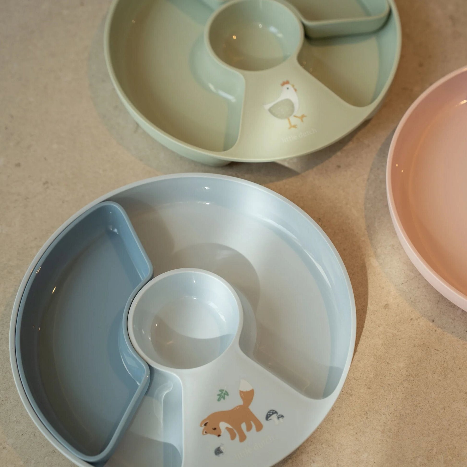 Zelf eten wordt een speels avontuur. Het Mepal Mio vakjesbord met het lieve Forest Friends printje van Little Dutch is speciaal ontworpen om kinderen te helpen zelfstandig te eten. De hoge randen en afgeronde hoeken maken het makkelijker om met een lepel of vork te oefenen, zonder te morsen. De antislipbodem zorgt ervoor dat het bord stevig op tafel blijft staan. Met het uitneembare compartiment deel je het bord in twee, drie of vier vakken – ideaal om verschillende smaken en structuren apart te houden. Het bord is gemaakt van duurzaam, BPA-vrij materiaal en geschikt voor zowel magnetron als vaatwasser. Het vrolijke bosdierenontwerp brengt extra plezier aan tafel, elke maaltijd opnieuw.